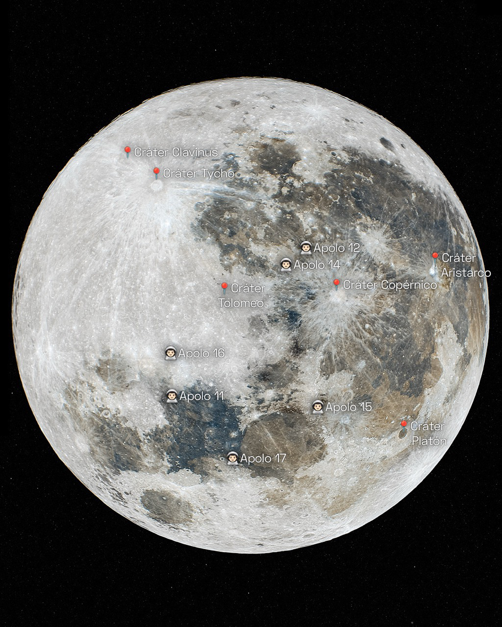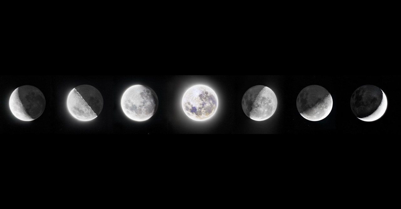 Capturas detalladas de la Luna en sus distintas fases, mostrando su textura, sombras y relieves.