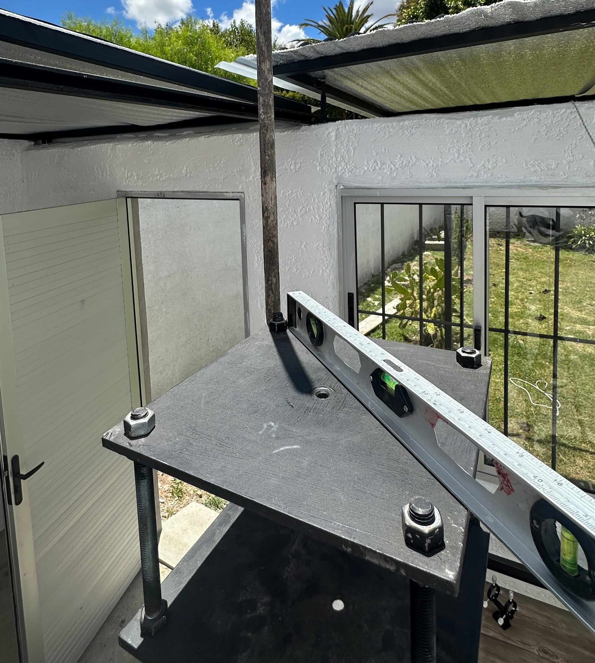 Una vez finalizada la estructura, realicé una alineación precisa utilizando la sombra del Sol al mediodía, para asegurar que la montura quedara correctamente orientada hacia el polo sur celeste. Fue un momento clave: la base invisible sobre la que todo funcionaría bien o mal.